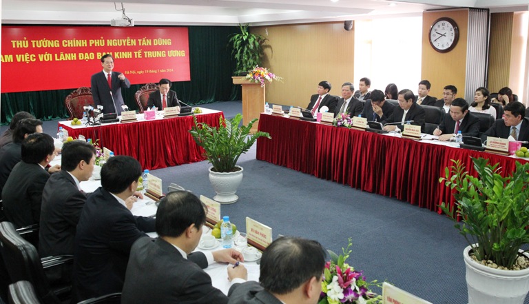 Tại buổi làm việc, Trưởng ban Kinh tế Trung ương Vương Đình Huệ đã báo cáo về tình hình thực hiện công tác năm 2013 và nhiệm vụ công tác trọng tâm năm 2014. Trong điều kiện mới tái lập, Ban Kinh tế Trung ương đã chú trọng triển khai song song 2 nhiệm vụ cơ bản; vừa xây dựng, phát triển tổ chức, bộ máy, nhân sự, vừa triển khai thực hiện một cách toàn diện 5 nhóm nhiệm vụ công tác theo chức năng, nhiệm vụ được giao. Các đề án nghiên cứu, báo cáo thẩm định chú trọng tính chính trị của kinh tế, những vấn đề xã hội gắn với kinh tế. Ban Kinh tế Trung ương đã tổ chức các đoàn làm việc và kiểm tra tình hình triển khai, thực hiện Nghị quyết, chủ trương của Đảng về phát triển kinh tế - xã hội tại các địa phương, Ban Chỉ đạo: Tây Bắc, Tây Nguyên, Tây Nam Bộ về việc thực hiện các Nghị quyết, Kết luận của Ban Chấp hành Trung ương; các Nghị quyết, Kết luận, Chỉ thị của Bộ Chính trị, Ban Bí thư về lĩnh vực kinh tế - xã hội vùng, địa phương. Bên cạnh đó, Ban cũng đã chú trọng chỉ đạo công tác phát triển đội ngũ cộng tác viên, hợp tác với các cơ quan, đơn vị nghiên cứu, mở ra cơ hội lớn để huy động tối đa trí tuệ của các nhà quản lý, khoa học, đội ngũ chuyên gia trong và ngoài nước trong thực hiên các nhiệm vụ chính trị của Ban. Tại buổi làm việc, các đại biểu đã thảo luận về nhiệm vụ công tác năm 2014, đặc biệt là các nhiệm vụ trọng tâm liên quan đến tổng kết 30 năm đổi mới, sơ kết 5 năm thực hiện Nghị quyết Trung ương 6 (khóa X) về tiếp tục hoàn thiện thể chế kinh tế thị trường định hướng xã hội chủ nghĩa và nghiên cứu, xây dựng kế hoạch phát triển kinh tế - xã hội 5 năm 2016 – 2020; các kiến nghị của Ban Kinh tế Trung ương nhằm nâng cao hơn nữa chất lượng và hiệu quả công tác của Ban. Nhấn mạnh việc tái lập Ban Kinh tế Trung ương là cần thiết, phù hợp với thực tiễn, Thủ tướng Nguyễn Tấn Dũng đánh giá cao nỗ lực của tập thể Ban Kinh tế Trung ương, nhất là nỗ lực trong kiện toàn bộ máy, thực hiện chức năng nhiệm vụ được Trung ương giao trong công tác tham mưu, đề xuất cho Đảng về các chính sách kinh tế- xã hội. Bên cạnh khẳng định những kết quả đã đạt được, Thủ tướng Nguyễn Tấn Dũng lưu ý, trong bối cảnh tình hình kinh tế - xã hội của đất nước trước mắt còn nhiều khó khăn, thách thức trong việc tìm động lực mới cho sự phát triển kinh tế, đảm bảo sự phát triển hài hòa giữa kinh tế và xã hội, do vậy, Ban Kinh tế Trung ương phải phấn đấu nỗ lực hơn nữa để làm tốt công tác tham mưu của Đảng và Nhà nước về lĩnh vực kinh tế - xã hội.